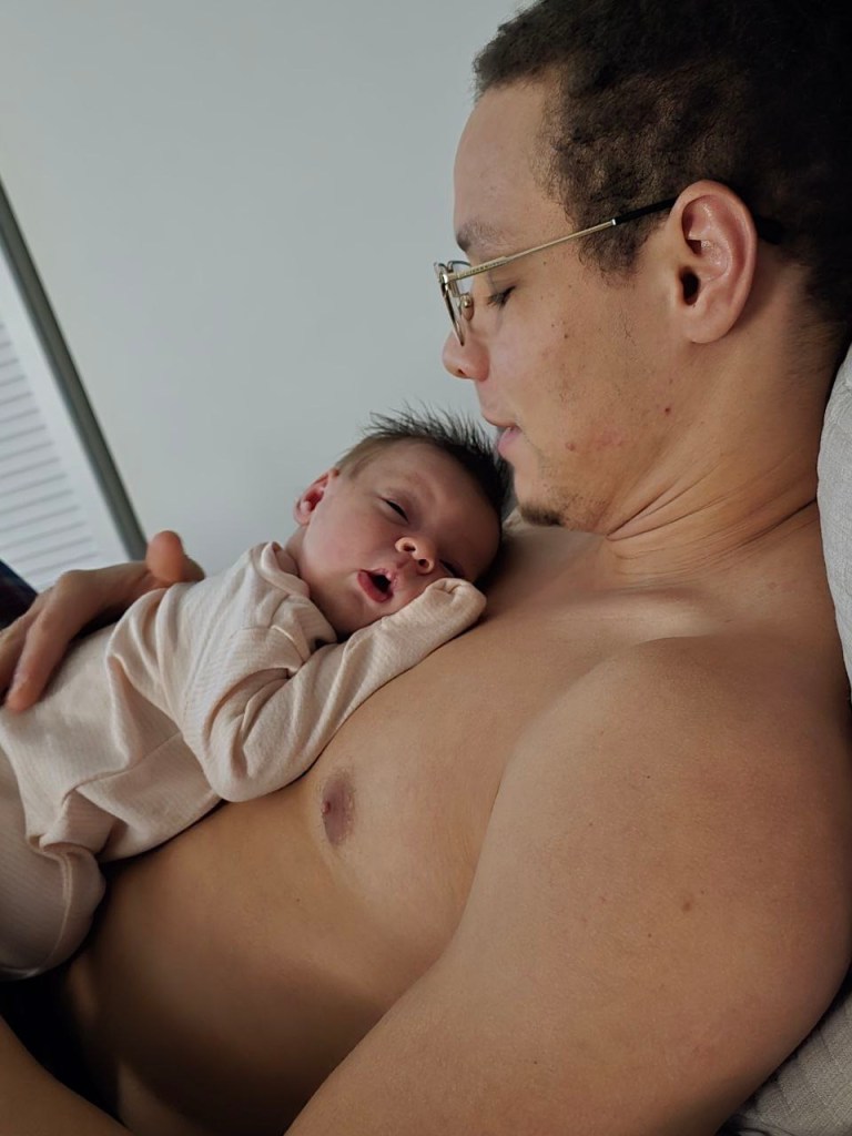 Есть плач. Фух! Сделав надрез на пуповине, мне дают ножницы, чтобы я её перерезал. Я был бы не я, если бы мне не понадобилось для этого две попытыки. Впрочем, уже не важно. Мы сделали это! Мы родились. И да, я прекрасно знаю, что рожала лишь жена, но в моей памяти участниками этого незабываемого боя останутся Тая, я, наша малышка, ну и врачи, естественно. И вот эту сплочённую команду мне хотелось обнимать и целовать всю оставшуюся ночь.